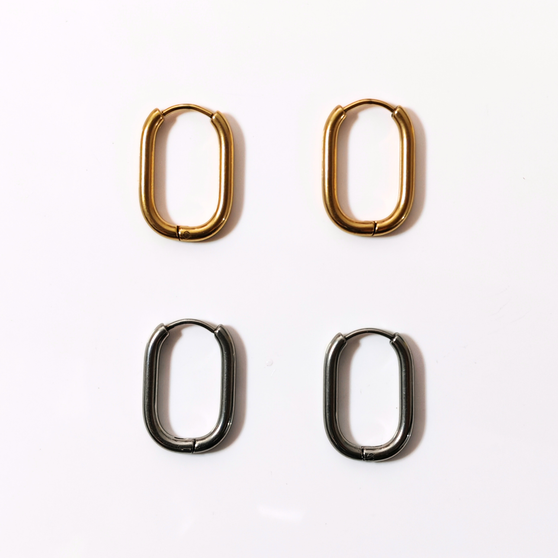 Créoles ovales en acier inoxydable 304L, diamètre 21 * 15 mm, épaisseur 2 mm.